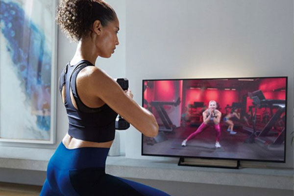 Members can access live or recorded online classes from Peloton®, one of the top online fitness programs.